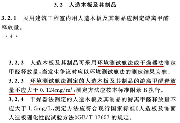 對(duì)室內(nèi)裝飾裝修設(shè)計(jì)提出了污染控制預(yù)評(píng)估要求及材料選用具體要求,為室內(nèi)污染治理企業(yè)開展事前治理提供了新的方向。以人造板為例,規(guī)定其甲醛釋放量不應(yīng)大于0.124㎎/m3,材料甲醛釋放量檢測(cè)采用人造板甲醛釋放量測(cè)定的環(huán)境測(cè)試艙法和干燥器法。