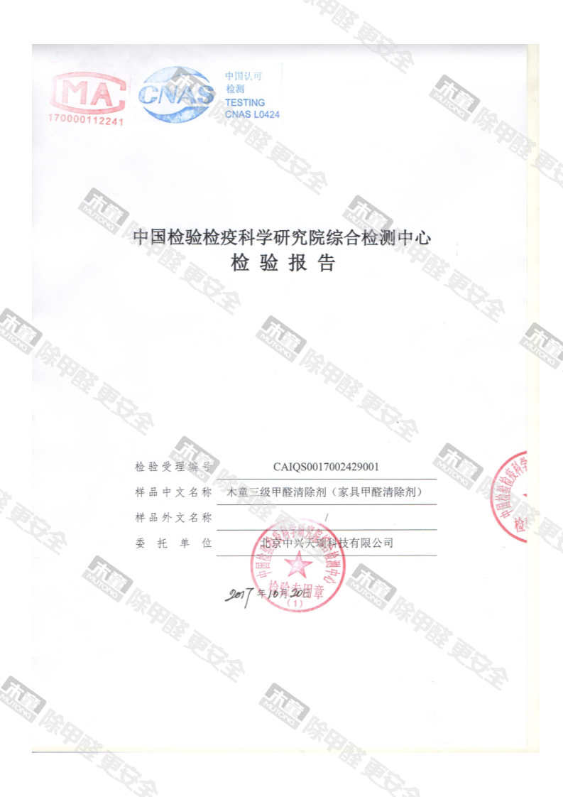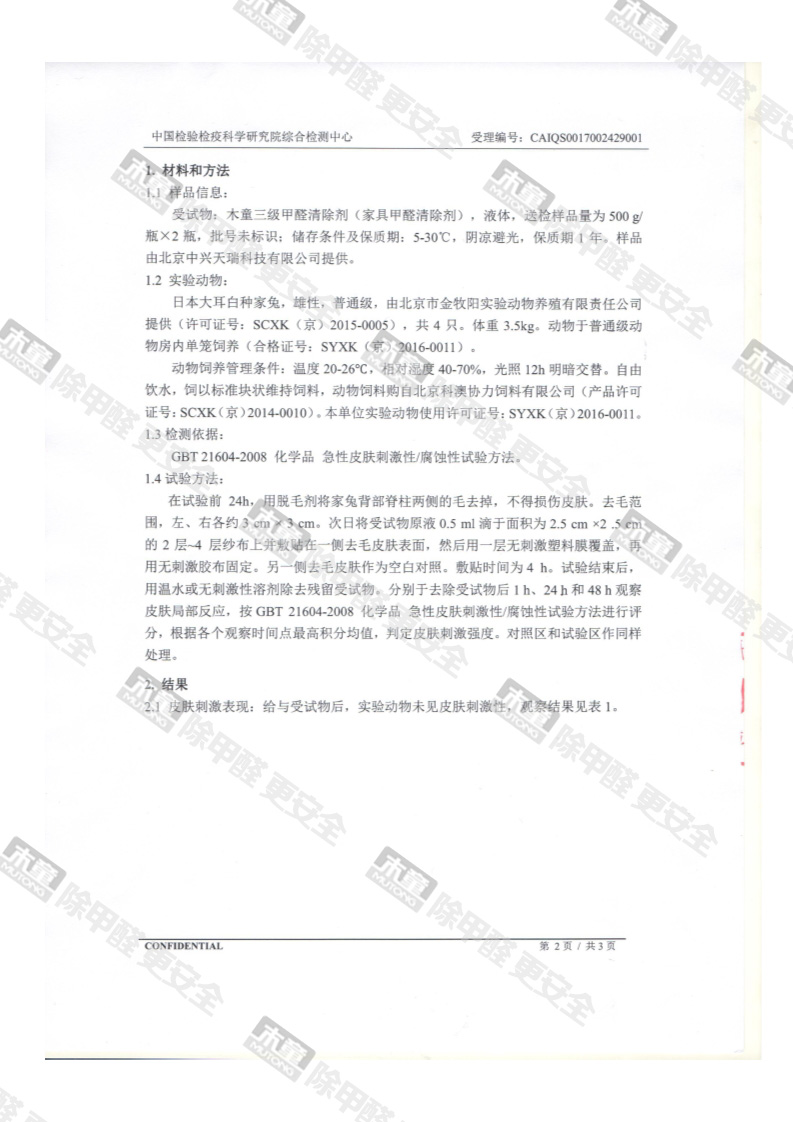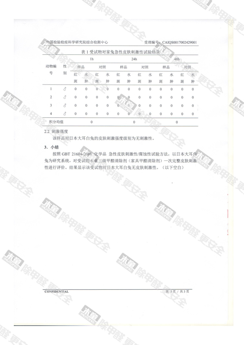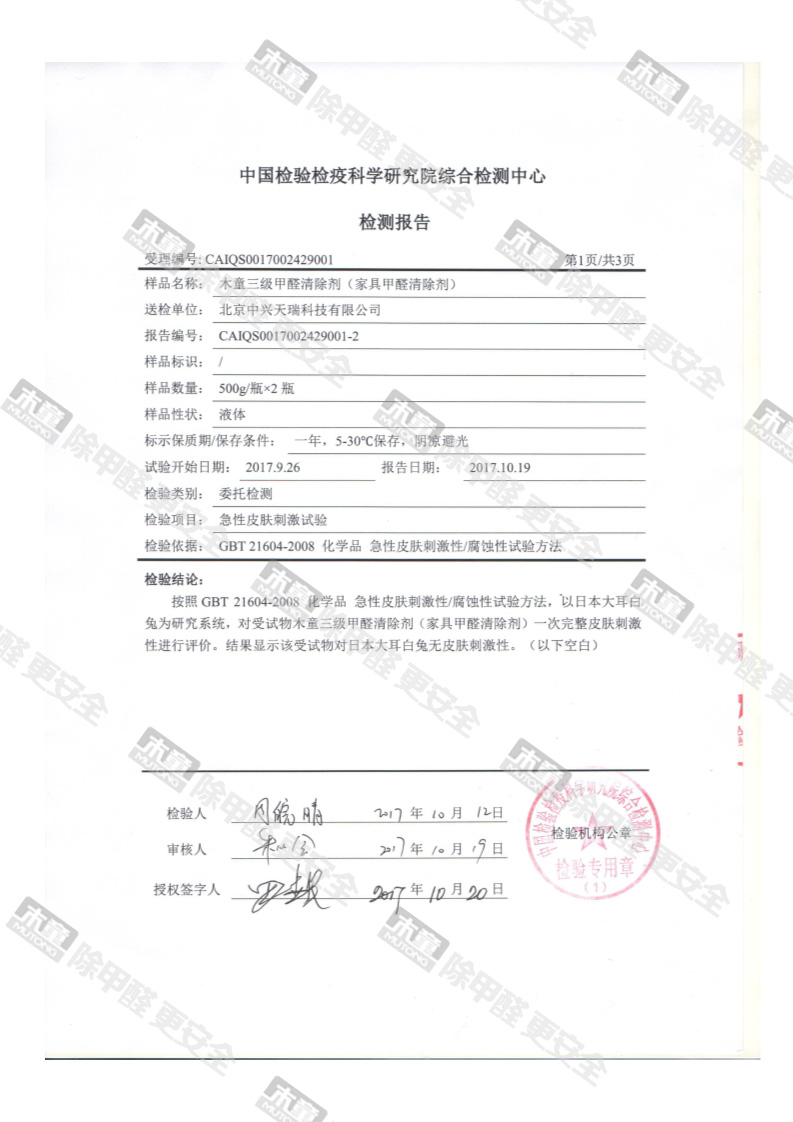 木童家具甲醛清除劑皮膚安全性檢測(cè)報(bào)告
