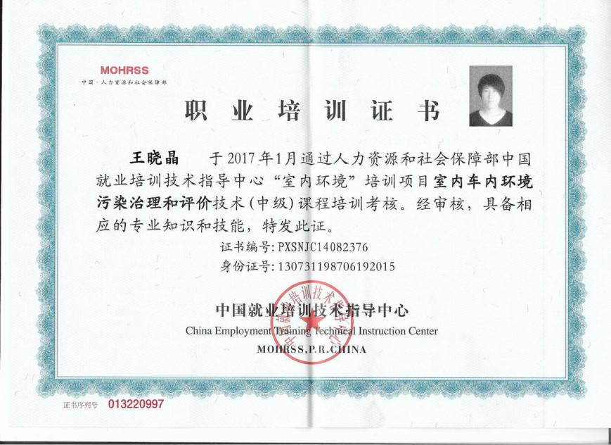室內(nèi)車內(nèi)環(huán)境污染治理和評(píng)價(jià)技術(shù)職業(yè)證書